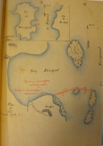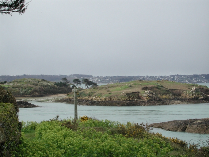 L'Île Béniguet (ou 'Biniguet', 'île Bénie') apparaît, en 1198, dans une lettre du pape Innocent III qui énumère les biens de l'abbaye de l'Île Saint-Riom ; de même en 1214, dans l'aumône faite par Conan, frère du duc de Bretagne. Elle fut occupée au cours des siècles par de nombreuses familles de cultivateurs-pêcheurs-goémoniers. Au 18ème siècle, l'île faisait vivre une cinquantaine d'habitants. De nombreux bâtiments, à usage domestique et agricole, datés du 1er quart du 19ème siècle, attestent de l'économie agricole de l'île. Il y aurait eu une chapelle sur l'île dédiée à saint Guénolé, attestée par une bulle du pape Innocent III, datée de 1198, qui précise que cet édifice aurait été donnée à l'abbaye de Saint Riom. Au 13ème siècle, la charge de cette chapelle était assurée par le recteur de Bréhat. Au 17ème siècle, l'édifice religieux appartenait au duc de Richelieu, héritier des anciens seigneurs de Belloy. La chapelle était en ruines à la Révolution. Il ne reste aucun vestige de cette chapelle, qui évoque un lieu dit sur le cadastre napoléonien de 1832 : 'Tal ar Chapel' (le 'Front de la Chapelle'), à l'Ouest, face au Kerpont. On relève pour la toponymie de l'île les toponymes suivants : 'Beg al Lann' (la 'pointe de la Lande'), 'Aod ar C'hozierou ou Koz Tiedou' (la 'Grève des vieilles maisons'), 'Beg Raden Veur' (la 'Pointe des hautes fougères'), au Sud-Ouest, constitué de 5 édifices, dont 3 bâtiments alignés, 'Mez ar Run', constitué de 2 bâtiments, 'Roc'h ar Gored' (le 'Rocher de la Pêcherie'), au Nord-Est, 'Roc'h ar Ouelen' (le 'Rocher du Goéland'), 'Pors Beniguet' le 'Port de Béniguet', au Nord-Ouest, 'Crech' Braz' (le 'Grand Tertre'), au centre de l'île, constitué de 12 édifices cadastrés, avec un chemin d'accès. Le lieu dit 'Kegaro', au Nord-Est, comprend les deux bâtiments les plus anciens à usage agricole, cadastrés en 1708 et 1707, et plus au Sud est porté le signal de 'Biniguet'. La Pointe de 'Roc'h ar Héré, au Sud du Karpont, comprend deux bâtiments (C 1727-1728). Au début du 20ème siècle, quatre familles vivaient en permanence sur l'île, dont les Collen, Chevoir et Corlouër. La première cale maçonnée de l'île fut construite sur la côte Nord par Madame Tirel, en 1921 pour l'usage de ses embarcations. Puis la cale Sud fut érigée en 1936. Le lieu où on accostait sur l'île a conservé son nom de 'Toull Karr', le 'charroi, qui permettait de traverser le Karpont à marée basse. L'île connut au cours du 20ème siècle, de nombreux propriétaires, en individuels ou en société, comme la 'Société agricole, Béniguet et extension', en 1930, avant d'être vendue en 1940 à la famille Fouillet et aujourd'hui à une nouvelle société foncière, qui a réalisé de nombreux travaux (cales et murs ceinturant l'île, cales, rénovation du bâti). Cependant, une partie des terres de l'Île Béniguet sont communales, dont le chemin vicinal, qui conduit de la rive Est à l'ancienne ferme de l'île. L'Îlot Grouezen ('Grou Ezen'), en partie privée, est cadastrée avec des parcelles numérotées (en bandes étroites) de 1887 à 1893.