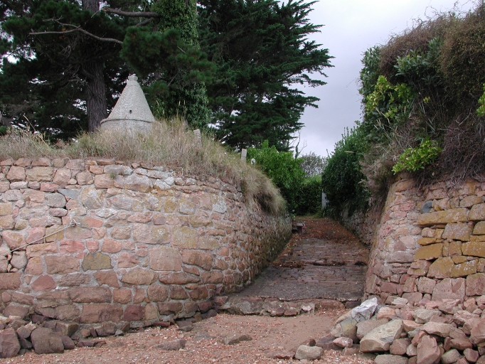 Les sentiers communaux sont souvent étroits et bordés de hauts murs privés, lorsqu'ils passent entre des propriétés privés. Certains sentiers en bord de mer sont restés privés. De nombreux sentiers littoraux desservent la grève et son dallés, pour servir de charroi. Parfois, le sentier communal présente un revêtement en ciment ou de graviers. Les murets qui les bordent sont couverts d'un chapeau en pierre. Ces murs sont rarement maçonnés.