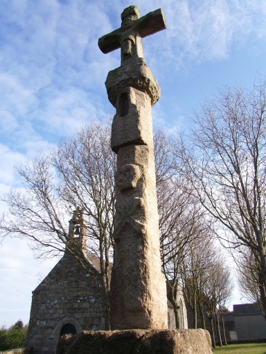 Chapelle du 18ème siècle, avec remploi du 15ème siècle (porte sud), et placître inscrits par arrêté du 12 mai 1969. Calvaire du 1er quart du 18ème siècle (date portée, 1714), inscrit par arrêté du 16 novembre 1964.