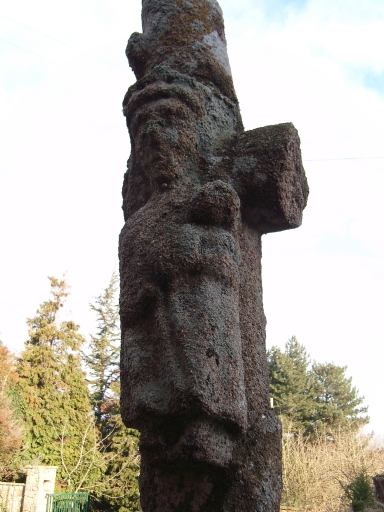 Croix de chemin sur socle et soubassement en granite. Elle est composée d'un soubassement massif formé par un emmarchement à deux degrés, d'un socle à griffes et d'une croix mutilée agrémentée d'un Christ en croix (face) et d'une Vierge couronnée à l'Enfant (revers).