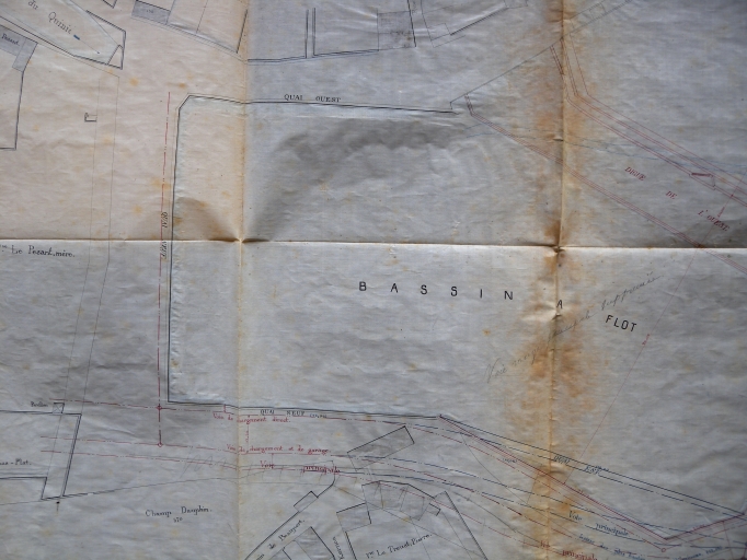 Les premiers projets de bassin à flot, datés entre 1875 et 1880 ont déterminé un bassin avec sas et sans sas au niveau de l'écluse. En 1880, la moitié Sud du bassin à flot était exécutée avec une écluse insubmersible et une digue en terre du côté du quai Ouest (côté bassin) et une levée en maçonnerie sèche du côté du port d'échouage. Un aqueduc déversoir permettait la dérivation des eaux du Quinic dans le bassin. Le désenvasement du port participait aussi à ces grands travaux qui allaient durer une dizaine d'années avec l'agrandissement du port (cale de carénage). En 1887, l'ensemble des travaux était exécuté par l'entreprise Thiriot-Jouanny. En 1960, le premier bassin était encore peu fréquenté par les navires professionnels. Quelques rares bateaux de pêche, des sabliers et des caboteurs alimentaient le trafic commercial. Le bassin comme l'ensemble du port de commerce est géré par la Chambre de Commerce. Aujourd'hui, les bateaux de plaisance sur pontons, animent le port, quai Morand.