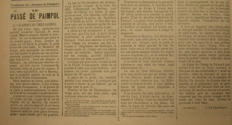 LE CHAPELAIN, Jules. Etude sur Paimpol. In Le Journal de Paimpol, 1er janvier-20 mars 1897.
