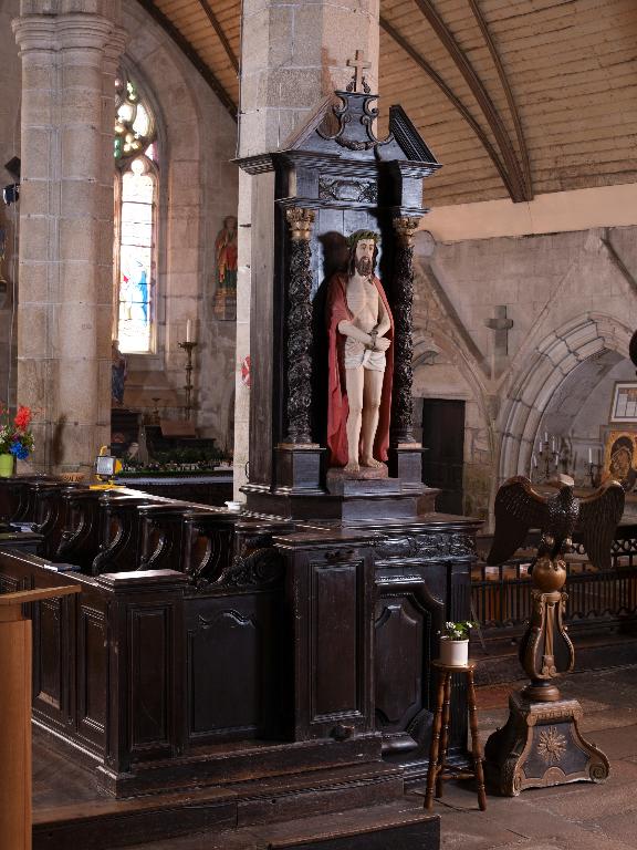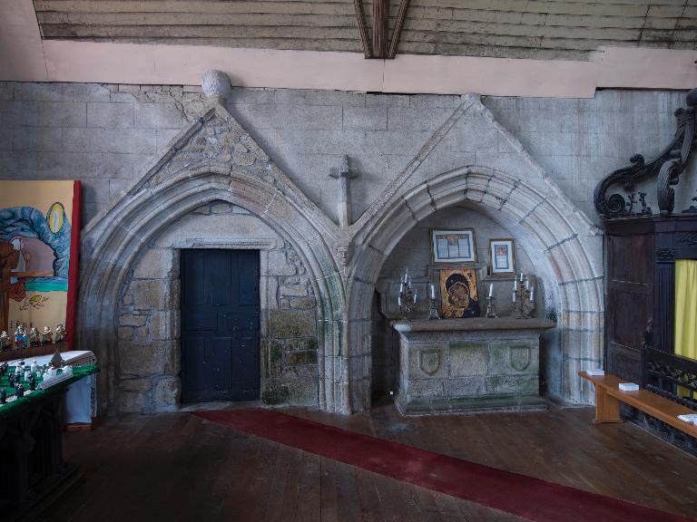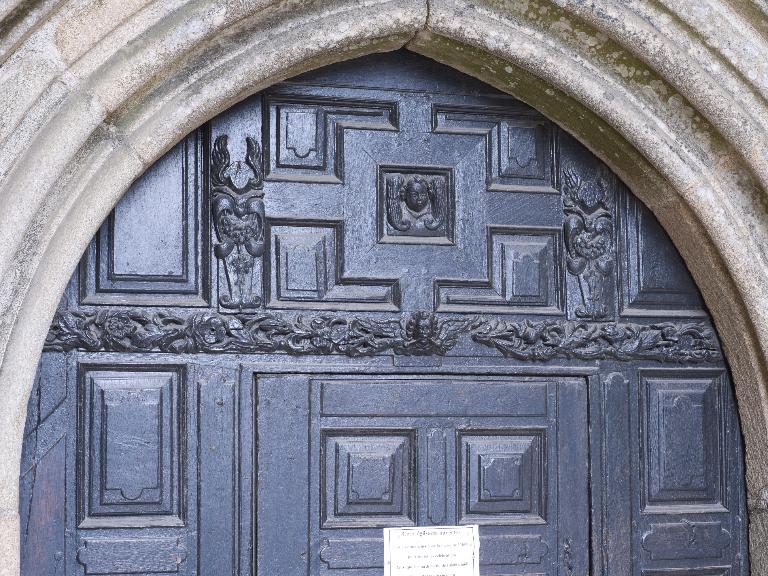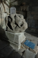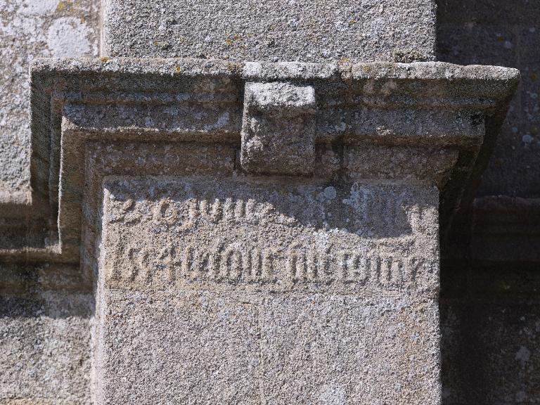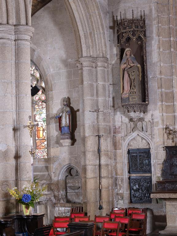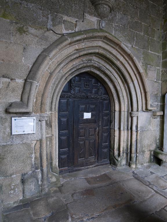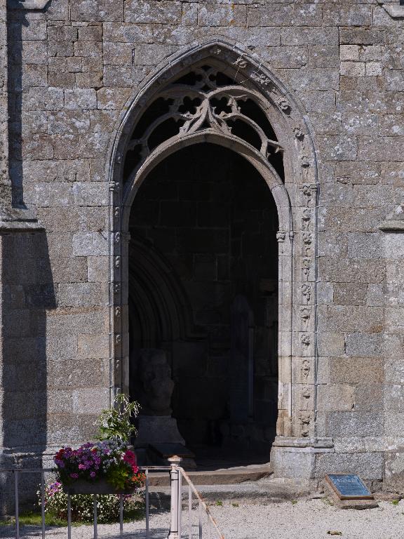 Depuis 1887, le porche sud abrite des intempéries le groupe sculpté dit « cavalier à l'Anguipède ». Cette statue constitue un élément remarquable du patrimoine cultuel de l'époque gallo-romaine en Bretagne.