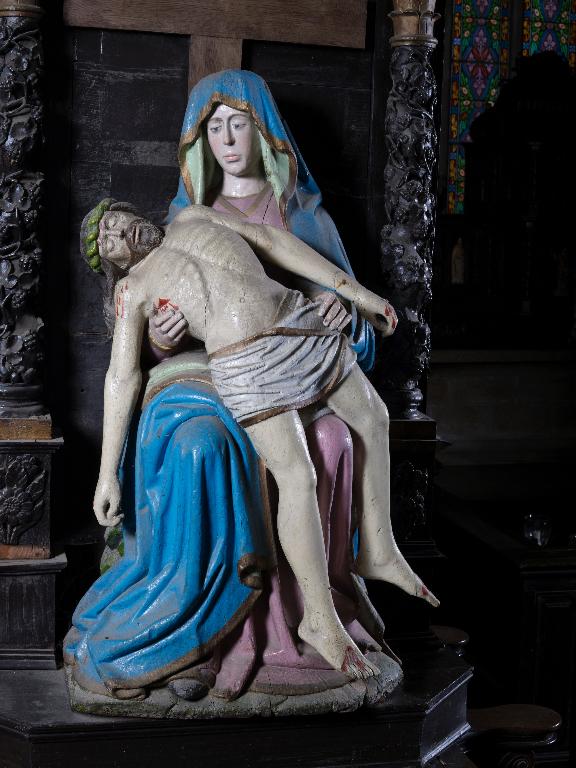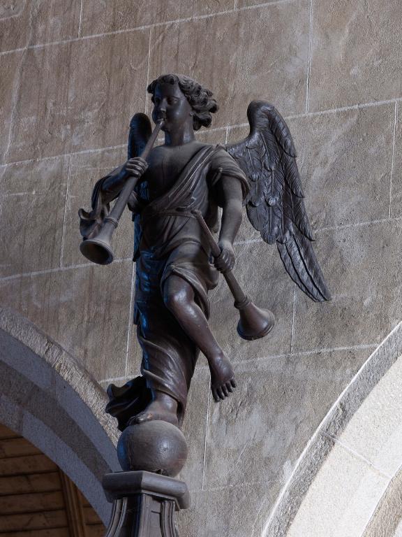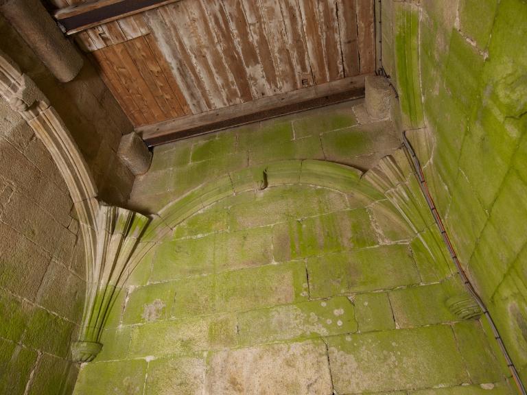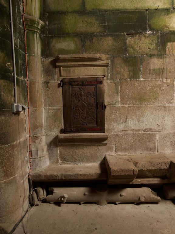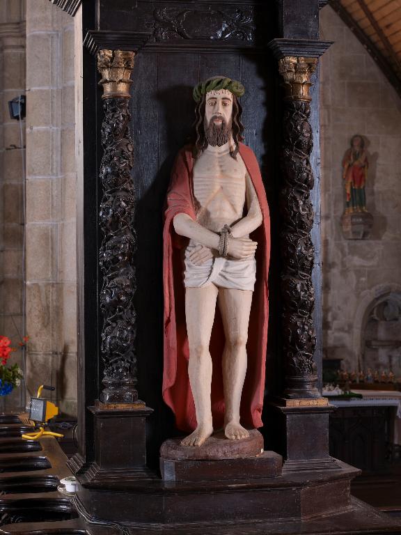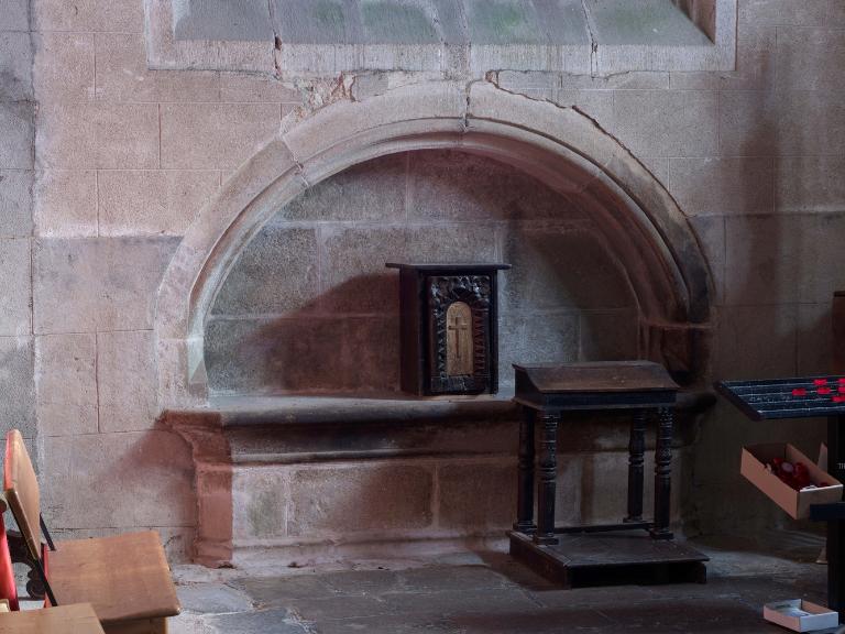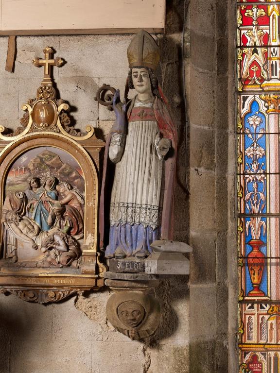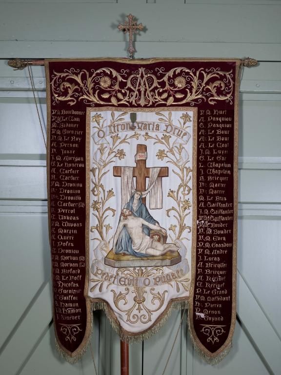 Depuis 1887, le porche sud abrite des intempéries le groupe sculpté dit « cavalier à l'Anguipède ». Cette statue constitue un élément remarquable du patrimoine cultuel de l'époque gallo-romaine en Bretagne.