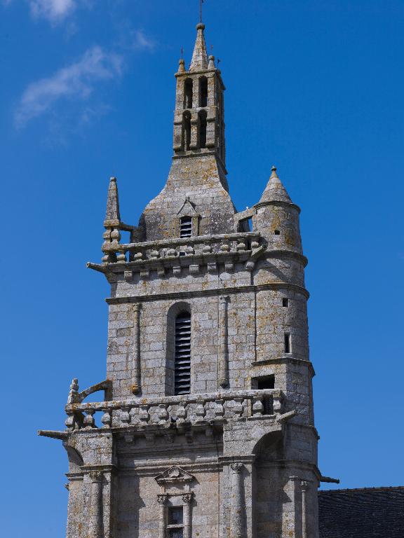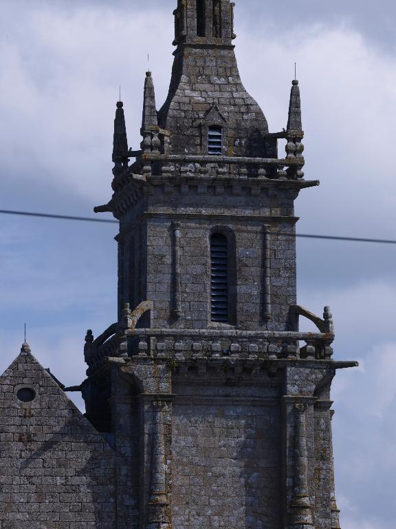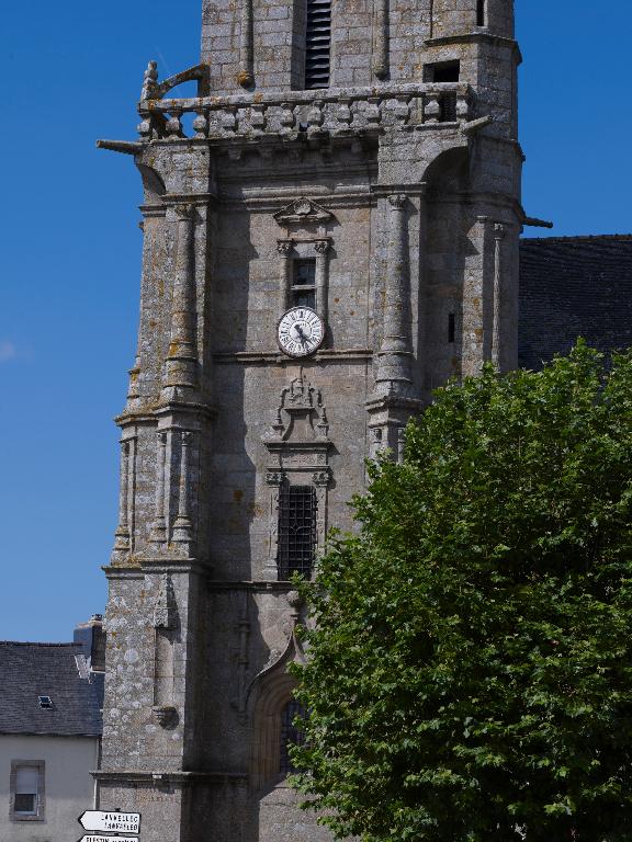 La partie haute de tour-clocher avec secrétairerie à l'étage, dont la date de construction - 1554, est attestée par une inscription, est sans doute l’œuvre de l'architecte Jean Le Taillanter. On retrouve des éléments récurrents qui caractérisent son œuvre, à savoir : l'emploi de colonnes et de chapiteaux corinthiens. Jean Le Taillanter est connu pour avoir travaillé sur la tour de l'église de Plougasnou (29), sur celle de Ploubezre, mais peut-être aussi à Loguivy-Plougras ou sur le portail du manoir de Guernanchanay à Plouaret.