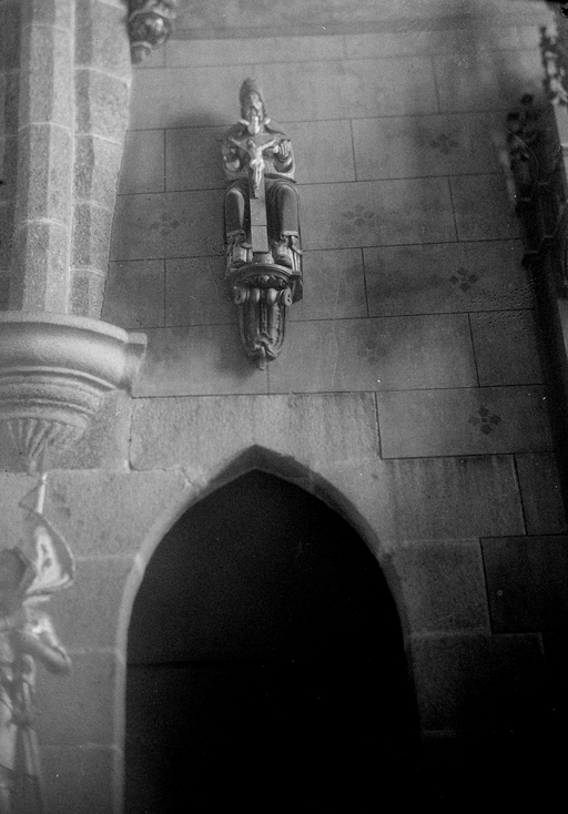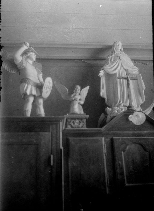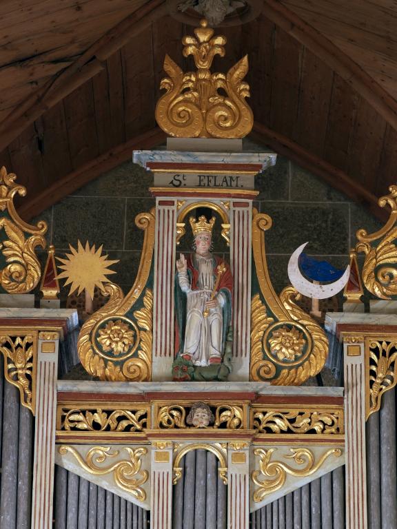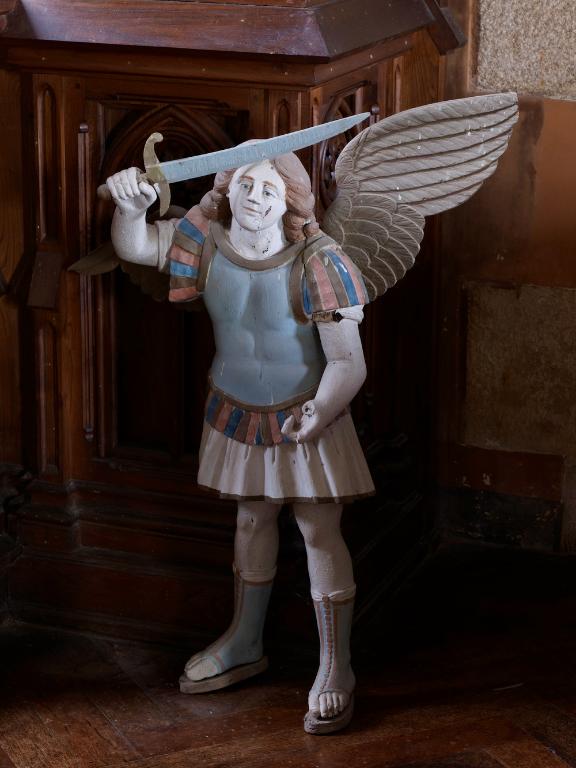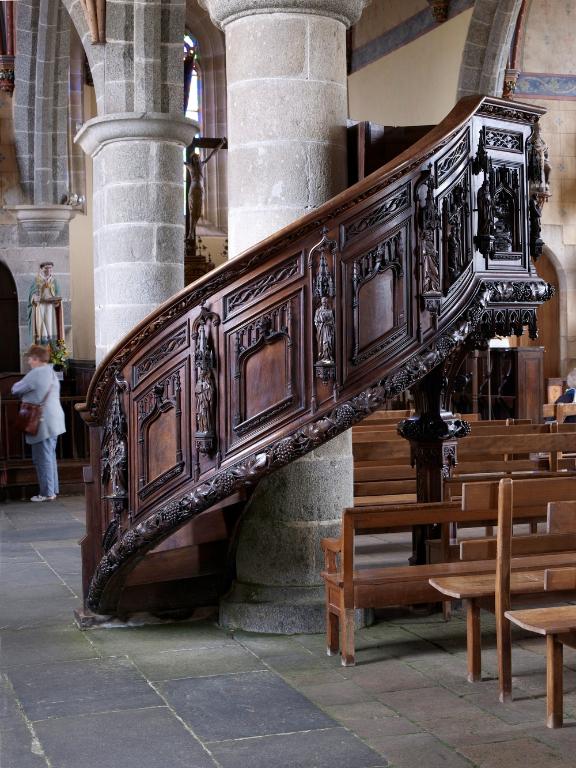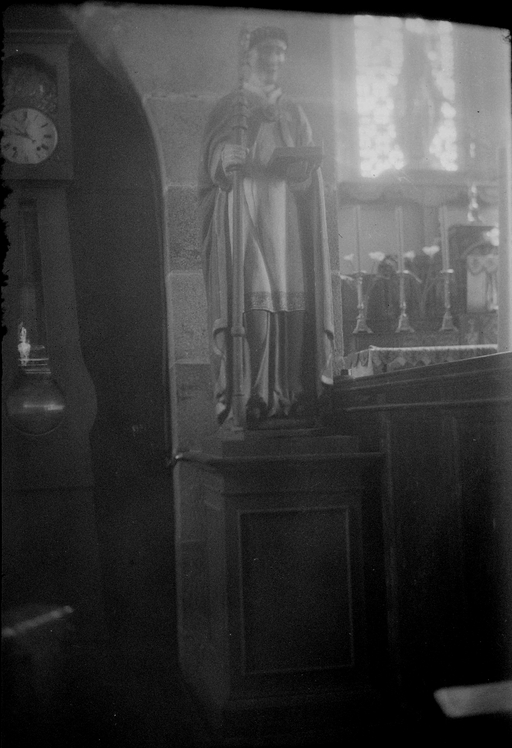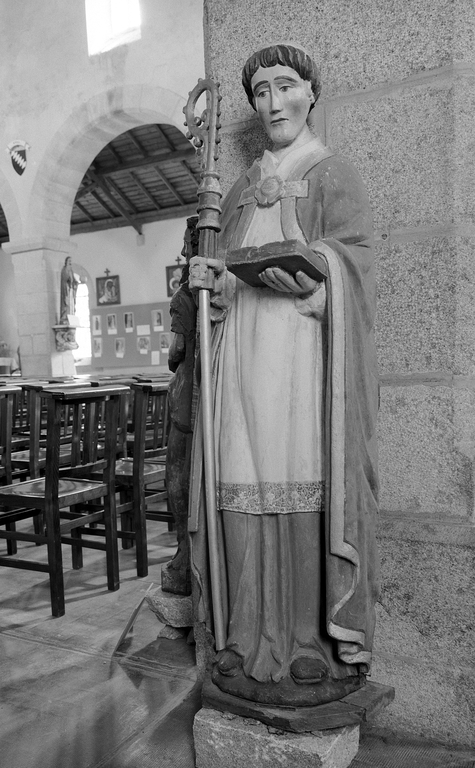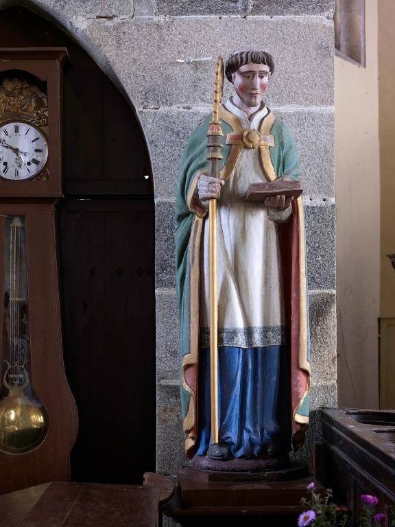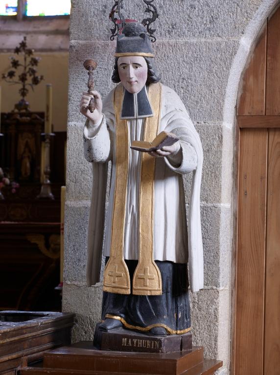 Statues anciennes de la sainte Trinité, sainte Vierge et saint Jean, venant d'un calvaire, sainte Anne, saint Samson, saint Brandan, saint Roch, saint Mathurin ; moderne de saint Yves.