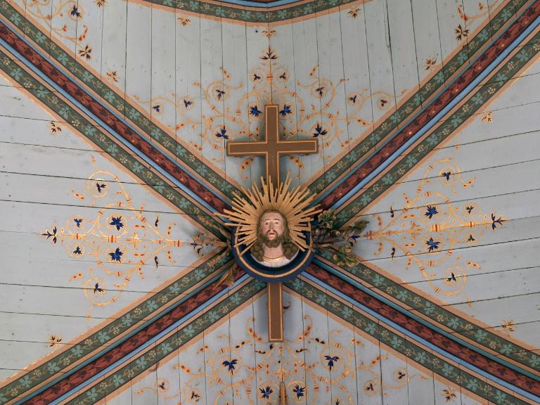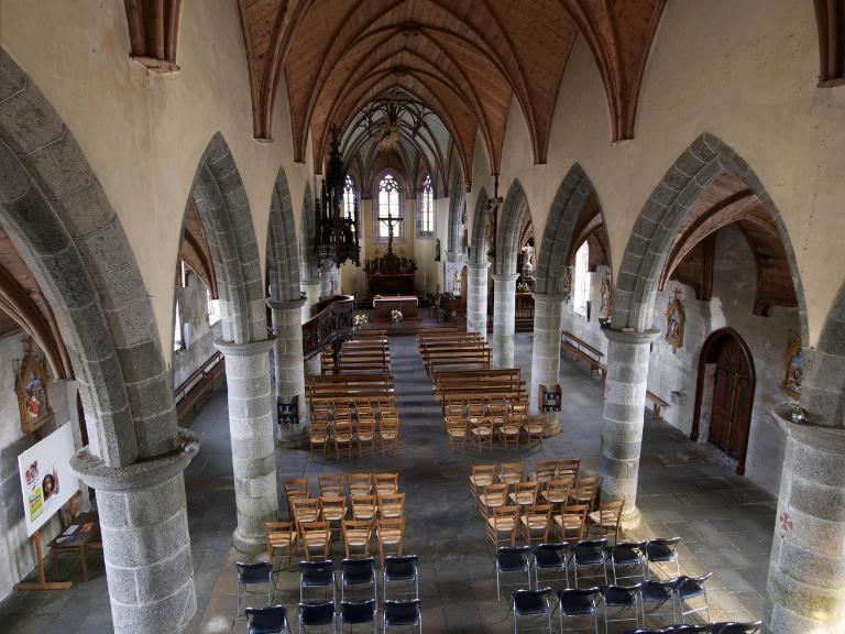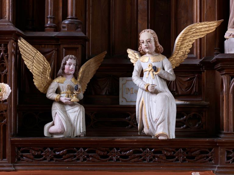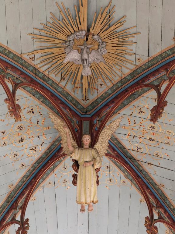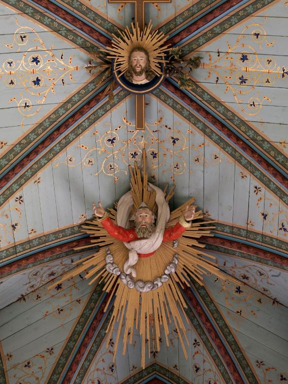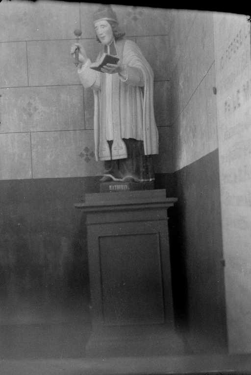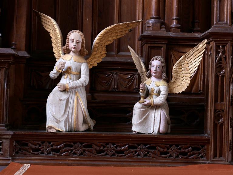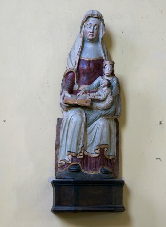 Statues anciennes de la sainte Trinité, sainte Vierge et saint Jean, venant d'un calvaire, sainte Anne, saint Samson, saint Brandan, saint Roch, saint Mathurin ; moderne de saint Yves.