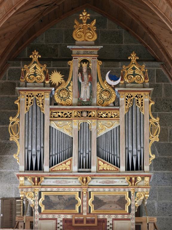 Les orgues sont les anciennes de Plestin ; le buffet, ancien, est surmonté de la statue du roi David jouant de la harpe (17e siècle). Le reste du mobilier, dont la très belle chaire, est dû à Philippe Le Merer (1870-1875).