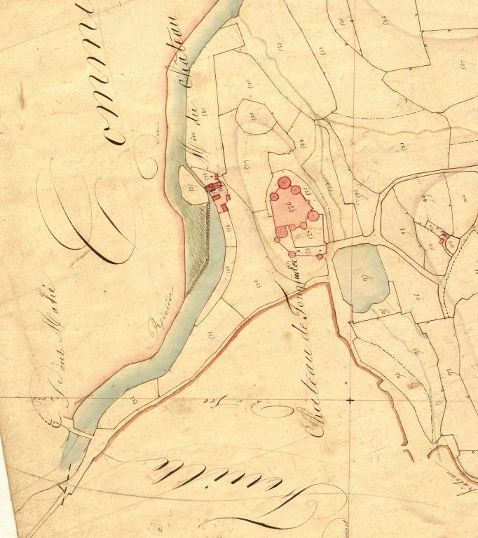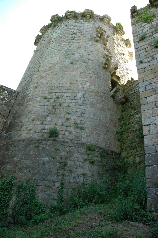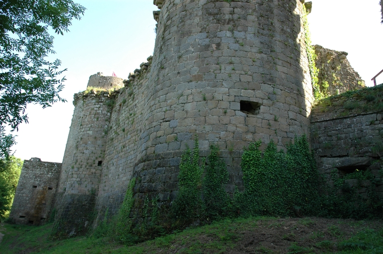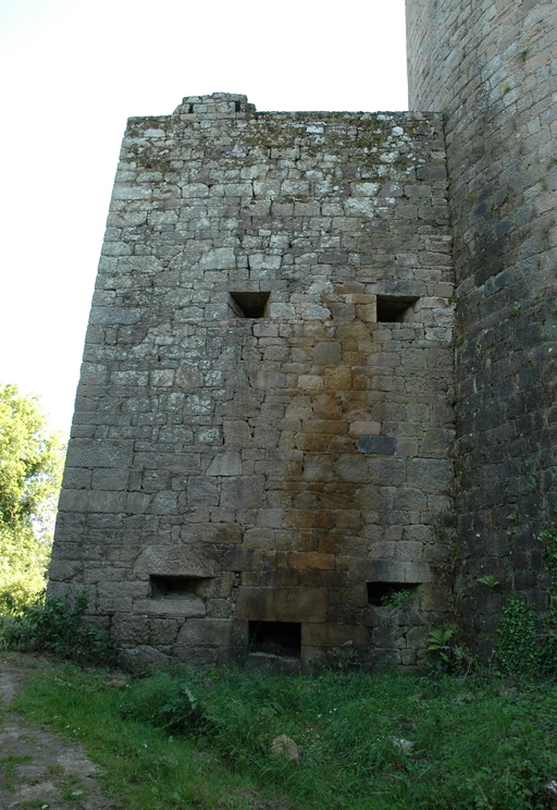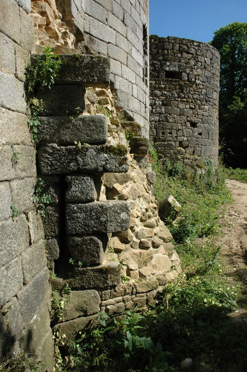 Un rapide examen des maçonneries nous renseigne un peu sur l´histoire du monument. Le grand appareil régulier assisé est attribuable aux campagnes de reconstruction quasi-totale du château au 15e siècle. Les traces d´appareil moins régulier visibles dans certaines parties hautes et de reprises avec percements d´embrasures à la française correspondent à la modernisation de la place, lors des guerres de religion, dans la seconde moitié du 16e siècle. Ce n´est qu´au sein du châtelet d´entrée que l´on distingue assez nettement la trace des deux tours qui jouxtaient l´ouvrage primitif, démantelé à la fin du 14e siècle.