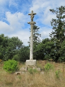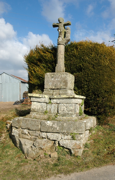 Edicule en granite gris, orienté est-ouest, culminant à 3,65 mètres de hauteur et situé en bordure de la route. Il est composé d´une base massive et d´un emmarchement maçonné de plan carré (0,95 m de hauteur), d´un soubassement avec table moulurée (0,5 m de hauteur) et d´une plateforme (0,2 m de hauteur) sur laquelle repose un socle cubique à griffes surmonté d´un très court fût de section octogonale (à base carrée avec griffes) sommé d'une croix de section octogonale ornée d'un groupe de la Crucifixion sculpté en haut-relief :