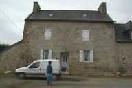 Logis de ferme de plan rectangulaire, orienté vers le sud, construit en pierre de taille de granite (uniquement pour l´élévation antérieure) avec une extension à l'est. Il est composé d´un rez-de-chaussée, d´un étage carré et d´un étage de comble. Accès antérieur quasi central et ouvertures originelles rectangulaires à linteau en arc segmentaire. A l’origine, dans la travée de gauche, deux petites ouvertures à linteau en arc segmentaire ; dans la travée de droite, à l'étage : un oculus de plan circulaire. Sur les linteaux des fenêtres hautes, on peut lire une inscription "Y L (?) EEVZ et M : LE : G (?) VILLOV" ainsi qu'une date : "177?". L´édifice est couvert d´un toit à longs pans et pignon est découvert à rampants et crossettes ; une souche de cheminée moulurée. Trois dépendances sont implantées autour de la cour : un ancien logis en moellon et pierre de taille (une cheminée subsiste à l'intérieur), devenu grange puis garage ; une étable (élévation antérieure pour grande partie en pierre de taille de granite) et une grange en moellon.
