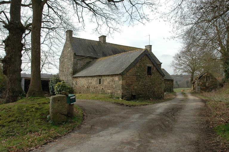 Édifice de plan rectangulaire, orienté vers le sud-ouest, construit en moellon et en pierre de taille de granite (uniquement pour l´élévation antérieure) avec dépendance à usage d´étable en retour d´équerre vers le nord-est. Il s´agit d´un logis de type ternaire composé d´un rez-de-chaussée, d´un étage carré et d´un étage de comble. Accès antérieur central et ouvertures rectangulaires à linteau en arc segmentaire. Porte et fenêtres en façade arrière moulurées en cavet. Logis mitoyen à pièce unique au rez-de-chaussée à l´est, de même nature mais à une seule travée de fenêtre. L´édifice est couvert d´un toit à longs pans et pignons découverts à rampants et crossettes ; trois souches de cheminée moulurées. Dépendance ruinée située au nord-ouest à usage de remise et soues à cochon ; hangar agricole en vis-à-vis du corps de logis.