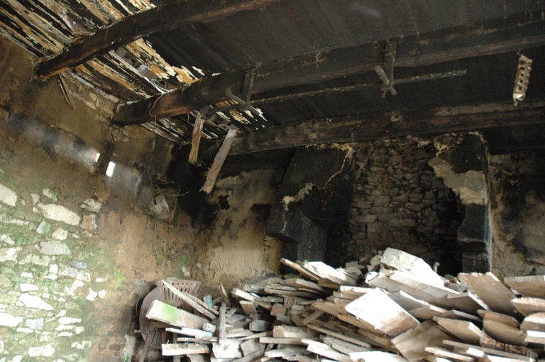 Édifice mitoyen de plan rectangulaire, situé dans un alignement composé de trois logis et d'une étable, orienté vers le sud, construit en moellon de granite à l´exception des entourages des ouvertures, de la lucarne, de la souche de cheminée et des chaînes d´angle en pierre de taille de granite. Il est composé d'un rez-de-chaussée et d'un comble. La façade antérieure est percée d´une porte rectangulaire encadrée de deux fenêtres. La lucarne centrale donne accès au grenier. A l´intérieur : cheminée engagée dans le pignon est en position centrale ; escalier de type cloisonné sans rampe. Cheminée et planchers sont ruinés.