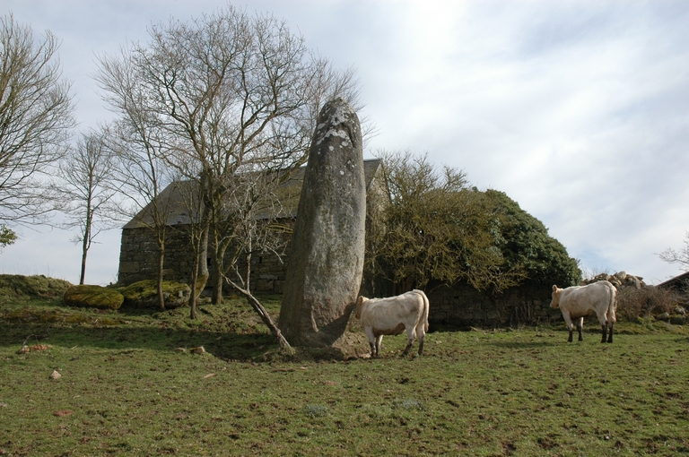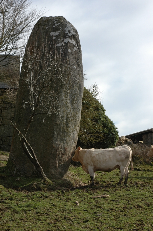 Menhir ou "pierre dressée" en granite, plantée verticalement dans le sol et mesurant 6,2 mètres de hauteur.