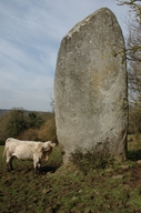 Menhir ou "pierre dressée" en granite, plantée verticalement dans le sol et mesurant 3,5 mètres de hauteur.