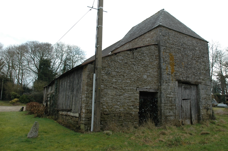 Édifice de plan rectangulaire, orienté vers le sud-est et construit en moellon de granite à l´exception de l´entourage des ouvertures en pierre de taille. Grande porte charretière à poteau central en granite encadré de deux portes en arc segmentaire (aujourd´hui murées). Il est accosté à l´ouest par un logement lui-même flanqué d´un appentis arrière. Toit à longs pans et pignons couverts ; logement avec toit à longs pans et à croupe.