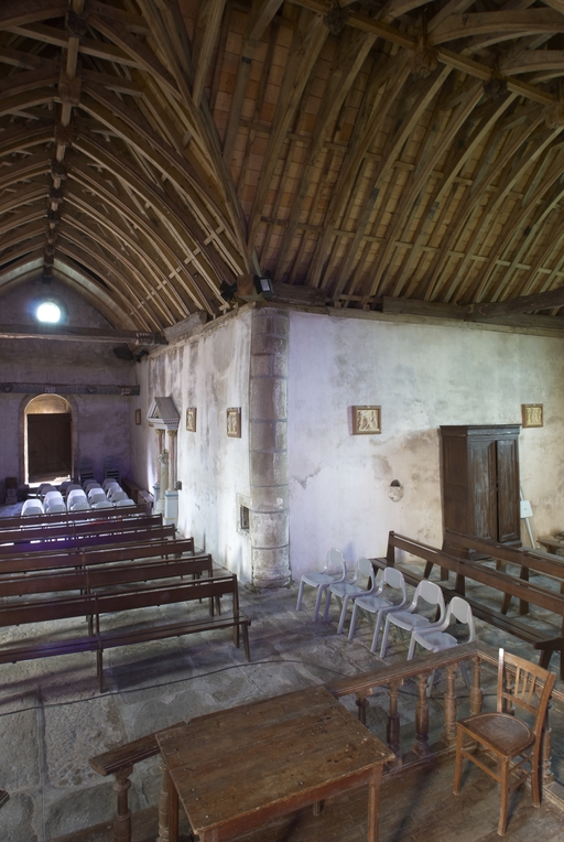 Edifice situé dans un enclos avec croix. Chapelle de plan en croix latine à vaisseau unique et à chevet plat. Gros-œuvre en moellon et moellon équarri de granite, à l´exception des chaînages d´angle et des encadrements de baies, en pierre de taille de granite. Clocher-mur avec porte plein-cintre moulurée, encadrée de deux colonnes soutenant un entablement et un fronton triangulaire. Pignon ouest percé d´un oculus. Clocher composé de deux chambres de cloches ajourées, surmontées d´un lanternon à base carré coiffé d´un acrotère.