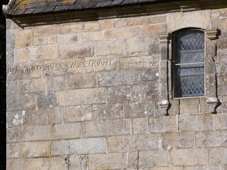 Chapelle isolée de plan en croix latine, chevet plat, clocher-mur accosté d'une tourelle d'escalier ornée d´un acrotère, avec un premier étage de deux chambres de cloches ajourées, ceint d´une balustrade, et un second, ajouré, décoré de rouleaux et flanqué de quatre petits pinacles et orné d´un petit toit à l´impérial à acrotère. Porte ouest plein cintre encadrée de deux pilastres soutenant un entablement formant larmier. Nef à vaisseau unique couverte d´un lambris de couvrement. Sol couvert de dalles de granite.