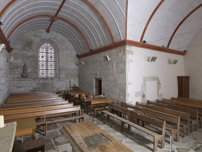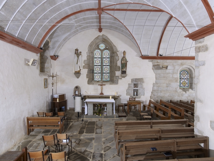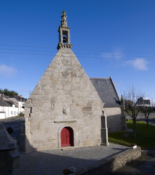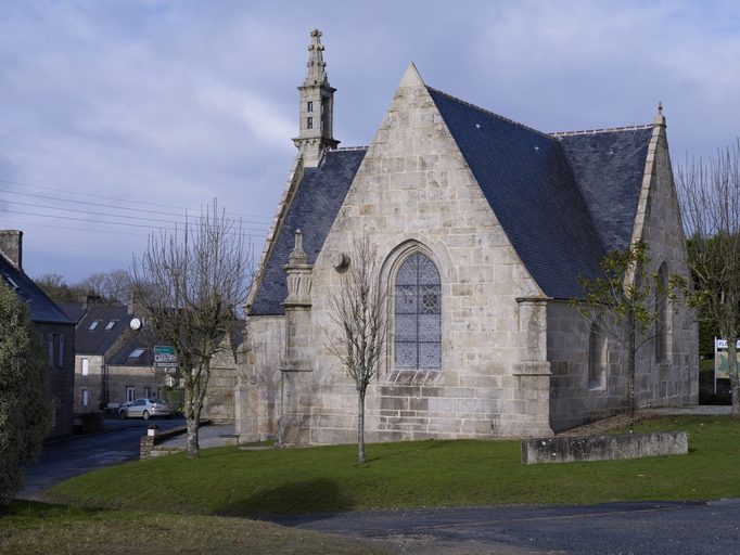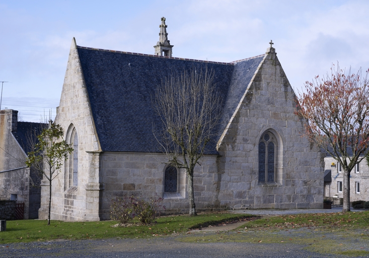 Chapelle située le long de la route Brest-Paris. Edifice de plan en L à vaisseau unique avec chapelle seigneuriale à l´est formant un bras du transept. Chevet plat. Construction en grand appareil régulier de granite couvert d´un toit à longs pans à pignons découverts. Clocher-mur avec chambre de cloches ajourée coiffée d´une petite flèche ornée de crossettes et encadrée de quatre petits frontons. Porte sud en plein cintre surmontée d´un larmier. Contreforts en équerre surmontés d´acrotères. Fenêtre passante nord encadrée par deux pilastres soutenant un fronton-pignon cintré orné d´acrotères. Cadran solaire en saillie sur le pignon sud de la chapelle latérale composé de 24 lignes horaires. Sur les sablières, on aperçoit les armes de Jean du Chastel, seigneur de Bruillac et de Marie Le Long de Keranroux, sa seconde femme, qu´il épouse en 1625. L'oratoire, situé en avant de la façade ouest de la chapelle, abritait vraisemblablement une statue aujourd'hui disparue. Une fontaine avec un bassin devait autrefois précéder cet édicule. La fontaine a été remplacée par une pompe adossée à un mur moderne, et l'oratoire a été surmonté d'une pyramide.