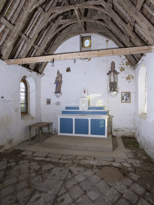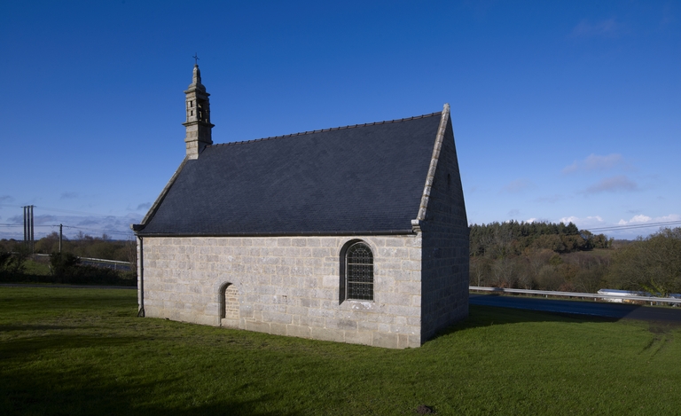 Chapelle située en écart, de plan rectangulaire, construite en pierre de taille de granite en grand appareil régulier. Chevet plat. Toit à longs pans en ardoise sur pignons découverts à crossettes moulurées. Clocher-mur avec chambre de cloche ajourée moulurée et ornée d´un acrotère. Porte ouest en anse de panier à voussures sommée d´un larmier.