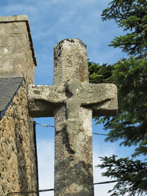 Croix de chemin en écart située à 100 m au nord de la chapelle des Sept Saints, au carrefour des routes qui mènent à le Stiffel, à Crec´h ar C'hoant et au Pont Coat Dunois. Soubassement de plan rectangulaire avec table portant un double socle avec base et table moulurées sur lequel repose une croix à hampe et branches courtes de section octogonale, portant les représentations très frustre d´un Christ à l´avers et d´une Vierge au revers.
