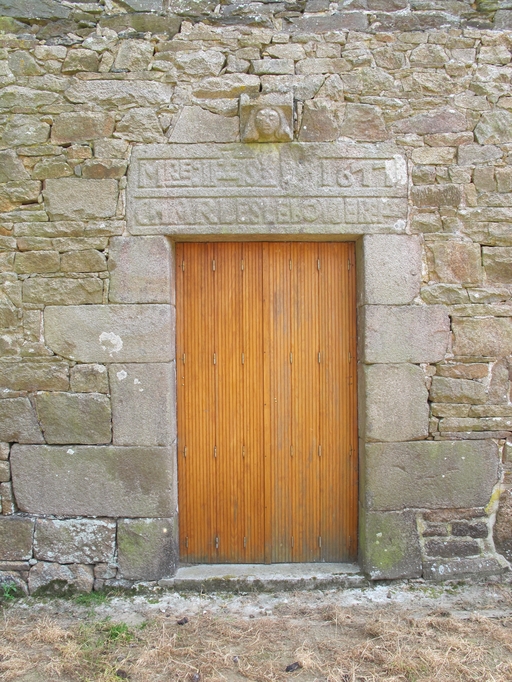 Ensemble bâti ancien composé notamment d'un logis de plan rectangulaire orienté vers le sud flanqué de deux dépendances. Construction en moellon de granite à l'exception de l'entourage des ouvertures réalisé en pierre de taille. Au-dessus de la porte nord du logis, on peut lire le millésime et l’inscription suivante : "MRE [abréviation de monseigneur ?] IHS 1677 / CHARLES LEBOER [?]" tandis qu'une tête humaine féminine a été intégrée à la maçonnerie. Les trois lettres "IHS" dit "monogramme du Christ" sont l´acronyme de l´expression "iesus hominum salvator" qui signifie littéralement : "Jésus, Sauveur des Hommes". La dépendance ouest reprend des ouvertures du 16e siècle à chanfrein et linteaux ornées d'une accolade autrefois barrotées.
