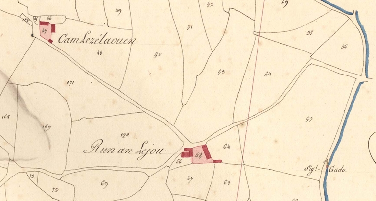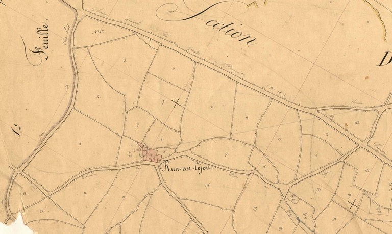 Cet ensemble de construction ancienne est situé à 2100 mètres au sud-sud-ouest du bourg de Lanvellec et à 161 mètres d´altitude. Il se trouve à l´est de Dour Elégo Rau. Trois bâtiments figurent sur le cadastre de 1813 associés au toponyme "Run an Lejou", quatre sur celui de 1848. On distingue notamment un fournil avec son four à pain orienté au nord. L´édifice, nommé aujourd´hui "Run ar Léjou", à l'origine une ferme à cour fermée, est daté de 1626 ; il a été remanié dans le dernier quart du 20e siècle.