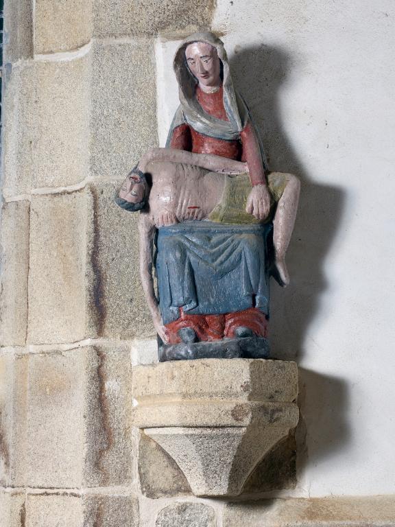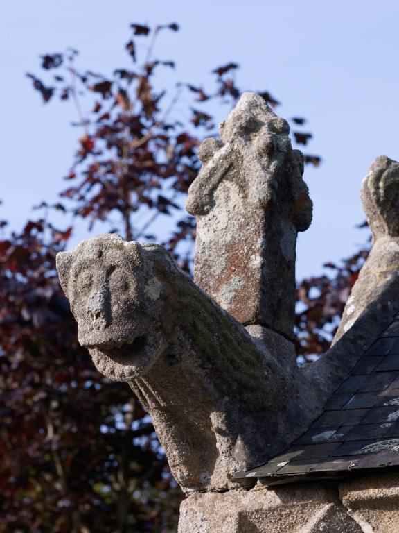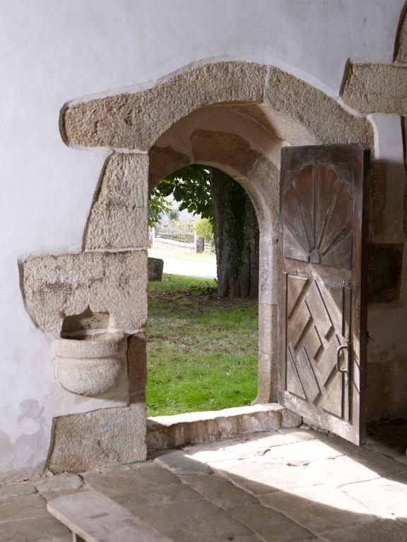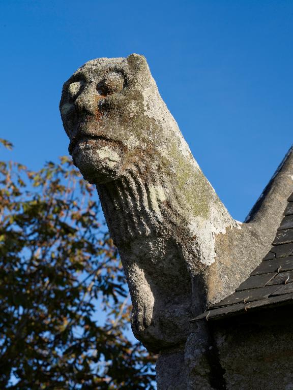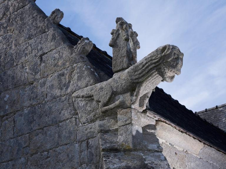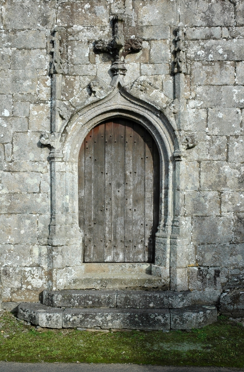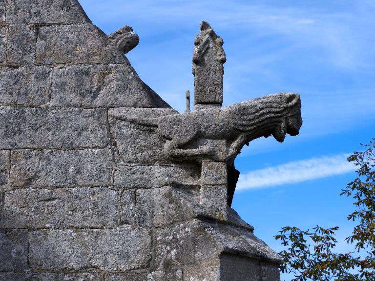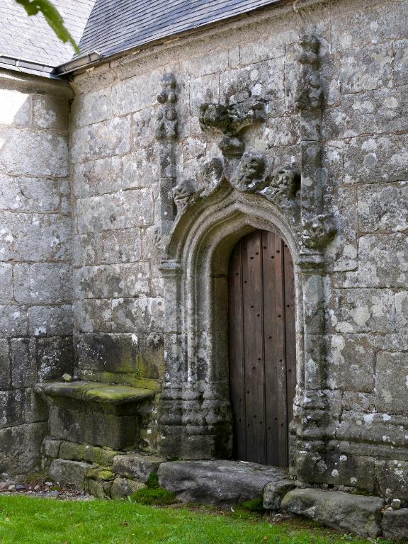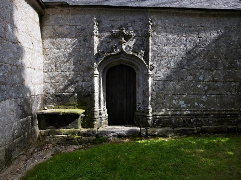 Edifice de plan rectangulaire à vaisseau unique construit en pierre de taille de petit et moyen appareil de granite, augmenté d'une aile en retour d'équerre au sud. La chapelle est ouverte de trois portes ornées : à l´ouest dans le mur-pignon, dans le mur sud et dans le mur ouest de l´aile en retour d'équerre. Elle présente un chevet plat percée d´une baie à remplage de pierre, tandis que les élévations sud sont ouvertes de deux autres baies à remplage. Toit à longs pans et pignons découverts à rampants et crossettes. Les angles sud-ouest, sud-est et nord-est présentent des crossettes sculptées représentant un lion.