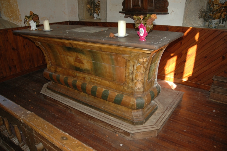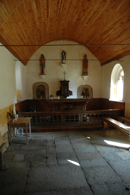 Edifice de plan rectangulaire, à vaisseau unique construit en pierre de taille et moellon équarri de granite. Mur-pignon ouest couronné d´un clocheton de plan rectangulaire à chambre de cloche ajourée et orné d´une croix en fer forgé. Il présente un chevet plat aveugle, tandis que les élévations nord et sud sont ouvertes d'une baie à remplage de pierre. On note également la présence d´un oculus en élévation sud. Portes ouest (surmontée d´un écu illisible) et sud en plein cintre. Toit à longs pans et pignons découverts à rampants et crossettes.