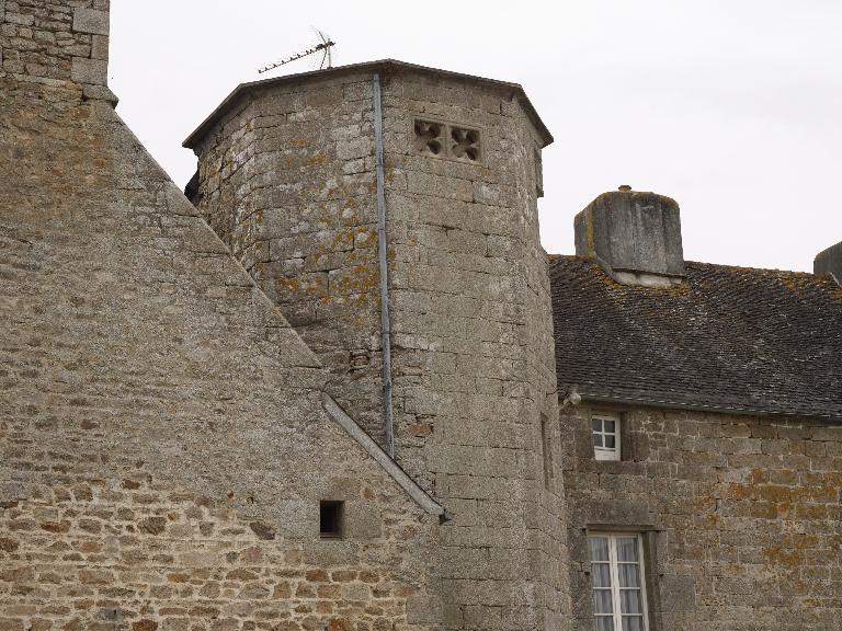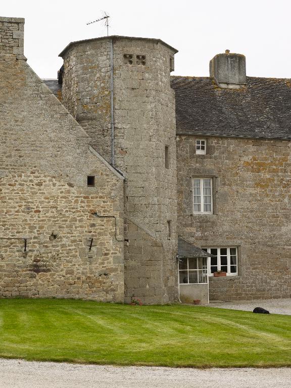 - le corps de logis a été agrandi vers le nord : le pignon a été entièrement remonté et doté d'un toit à croupe. La façade postérieure trahit le remontage important de maçonnerie. Les anciennes crossettes sculptées sont réutilisées aux angles nord-est et nord-ouest. De nombreuses ouvertures ont été modifiées en façade antérieure entraînant une modification de la distribution.