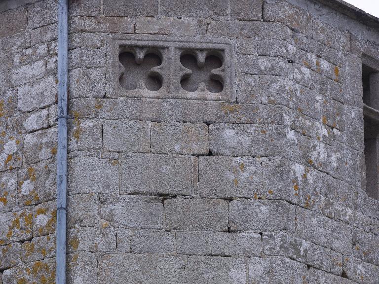 Les moulurations en cavet des piédroits et linteaux, ainsi que les ancrages des grilles (disparues) nous renseignent sur les ouvertures originelles : les deux fenêtres situées les plus au sud. Elles ont cependant perdu leurs traverses en granite.