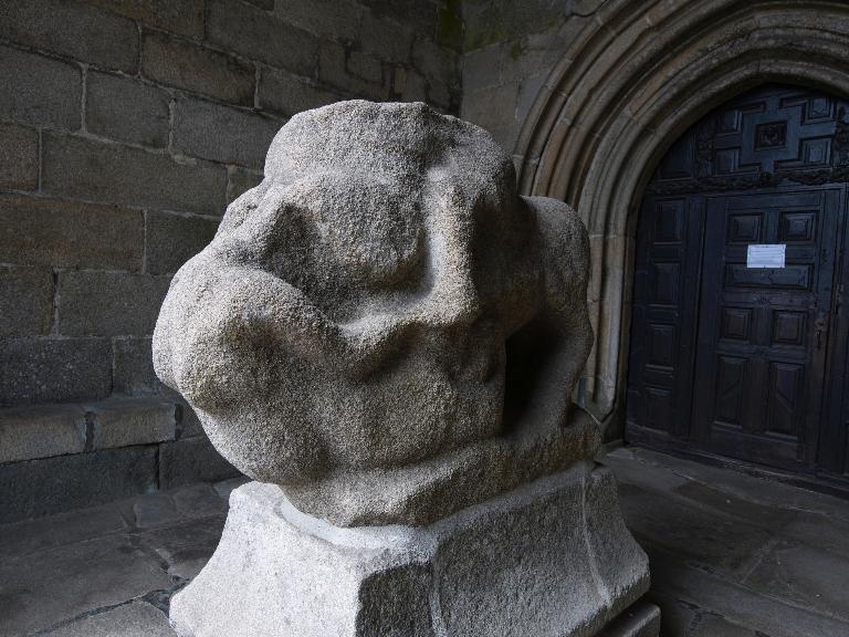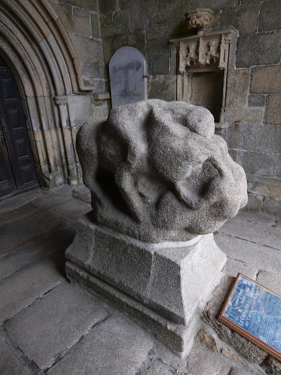 Sculpture monolithe en granite à grain fin, légèrement ocre jaune, de provenance locale d'une hauteur de 88 cm pour une longueur de 133 cm, représentant un "cavalier au géant anguipède" ou "cavalier à l'Anguipède". Le groupe sculpté de Plouaret représente le dieu-cavalier Jupiter sur son cheval foulant un monstre de sexe féminin (la poitrine en avant) de forme mi-humaine, mi-animale dont les jambes se terminent en queue de serpent (d´où le nom d´"anguipède"), sur un socle quadrangulaire. Le cavalier, vêtu d´un court manteau et chaussé de bottines, est brisé au-dessus du bassin ; la tête du cheval et celle du monstre sont manquantes. Selon l´historien de l´art, Jean-Yves Eveillard : "le groupe de Plouaret se distingue nettement par sa conception et son exécution de ses homologues quimpérois [...], il est l´oeuvre d´un praticien mois expérimenté et moins audacieux". Ce type de statuaire était le plus souvent installé au sommet d´une colonne (à 3 ou 4 mètres de hauteur) en pleine campagne et à l´écart de toute agglomération. Une voie romaine passe à proximité à l´ouest.