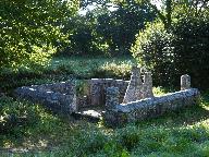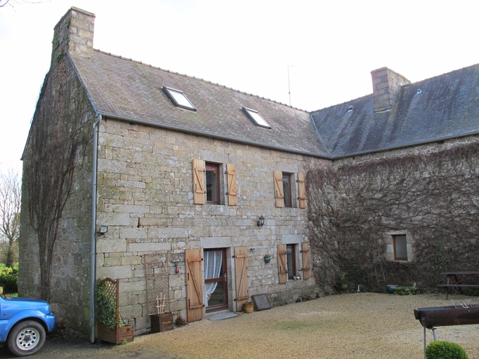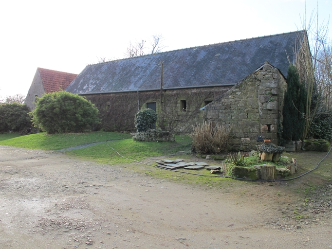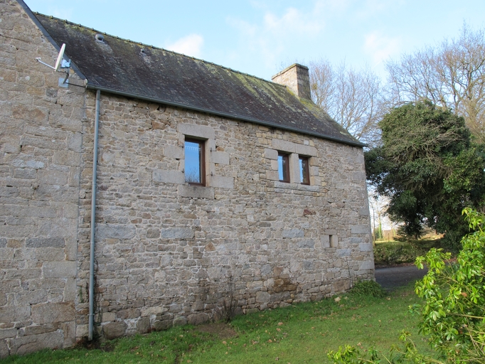 Il s´agit d´un bâtiment à deux corps. Le corps longitudinal est orienté vers le sud-est. Il est construits en moellon et en pierre de taille de granite et est couvert d´un toit à longs pans en ardoise ; pignons couverts. L´élévation antérieure présente plusieurs remaniements (remontage, percement de fenêtres : ?) qui compliquent la datation de l´édifice. Les souches de cheminée ont également été reconstruites. En l´état, il est composé d´un alignement de deux logis : - à droite, un logis à une pièce au rez-de-chaussée (porte en arc brisé et fenêtre rectangulaire) et à une pièce à feu à l´étage (fenêtre rectangulaire et oculus percé dans le pignon est). Ces éléments, ainsi que la présence d´une cheminée ouvragée permettent de dater le logis de la fin du 16e siècle ou du début du 17e siècle. - à gauche, un logis à deux pièces au rez-de-chaussée (?), accès antérieur latéral (porte à piédroits chanfreinés et linteau en arc segmentaire délardé ; deux fenêtres rectangulaires dont l´une, réutilise un linteau orné d´une accolade) et un étage carré doté d´une pièce à feu. La cheminée est engagée dans le pignon ouest en position centrale et son manteau porte le monogramme du Christ (IHS). Le logis semble dater de la fin du 17e siècle ou du 18e siècle mais a été remanié. Le corps transversal est orienté vers l´ouest-sud-ouest. Il est élevé en moellon équarri à l´exception de l´encadrement des ouvertures et des chaînes d´angle en pierre de taille de granite. Accès antérieur latéral et fenêtre rectangulaire au rez-de-chaussée ; étage carré à deux fenêtres rectangulaires. Il est couvert d´un toit à longs pans en ardoise ; pignon nord couvert. Sa façade postérieure a été récemment remaniée (percement d´une double baie). Dans cette façade, orientée à l´est, des os d´animaux sont fichés dans les assises du mur à intervalle régulier. Ils servaient probablement de support à un treillage, c'est-à-dire à des lattes en bois qui se croisent et forment des parallélogrammes. Ce logis est datable des années 1820. La grange est construite en pierre de taille de granite. Elle est dotée d´une porte charretière à deux piliers monolithes en pierre de taille (l'un a disparu), encadrée de chaque côté, par une fenêtre rectangulaire. Toit à longs pans ; pignons couverts ; sablière sculptée.