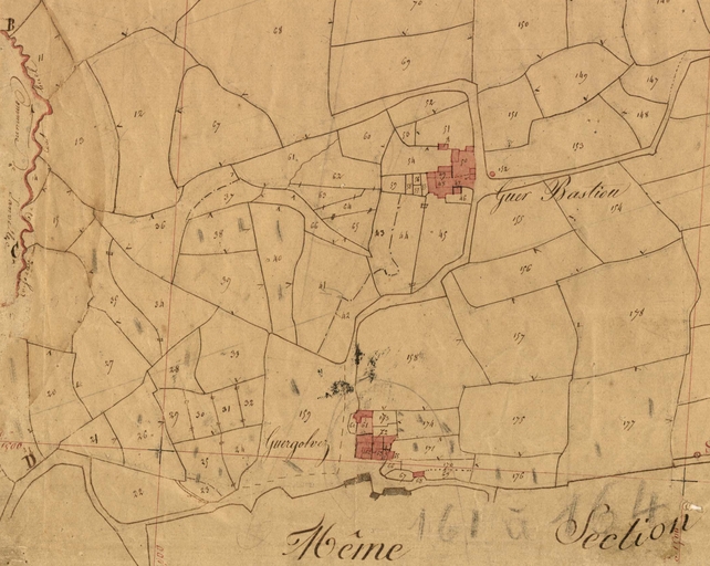 Fontaine associée à un lavoir dépendant du hameau de "Guer Bastiou", aujourd'hui "Guerbasquiou" au nord. Vraisemblablement datable du début du 19e siècle, elle ne figure pourtant pas sur le cadastre de 1835.