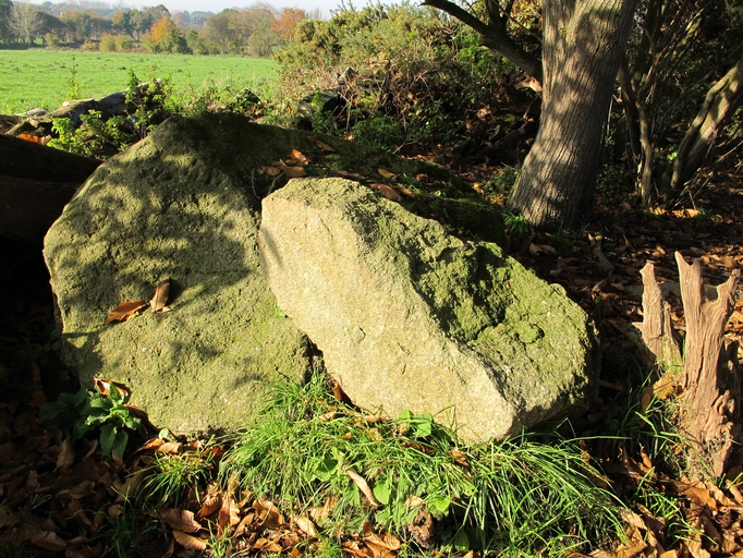 Kernigoual : pierre (Inscription : F : F : PAR JEAN MARIE LE HUEROU EPOUX DE CATHERINE ELET [ ? ] 1802).