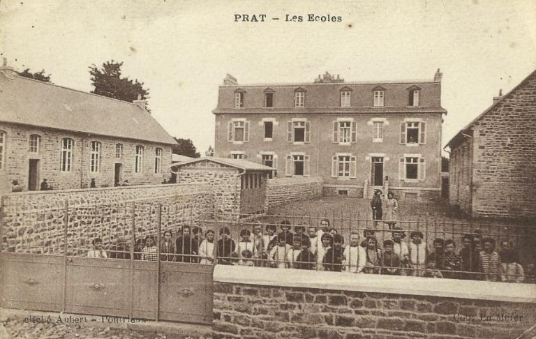 "On voit sur les registres de la paroisse que, dès 1715, Pierre Le Gros était maître d´école à Prat, et Isabeau Querguntul, maîtresse d´école. Le 15 pluviose an IX [mercredi 4 février 1801], Prat fut doté d´une école mixte dirigée par un instituteur. Actuellement il existe une école de garçons, une école communale de filles et une école privée avec pensionnat de jeunes filles et une école maternelle" (source : RIGAUD, Jean-Marie. 1890).