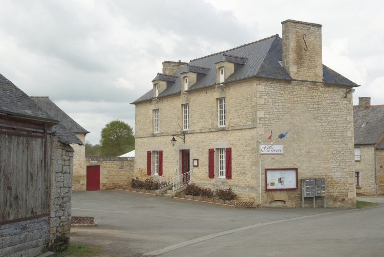 Le premier presbytère de la paroisse se trouvait jusqu´au milieu du 19e siècle au nord-ouest du bourg au niveau d´un croisement de chemins, près de la Ville Gohen. Le nouveau presbytère, actuellement siège de la mairie, fut construit en 1850 (date portée sur la lucarne de droite) ; la lucarne centrale est gravée de l´inscription, « F. PAR LA COMMUNE. DUPAS RECTEUR. HOMO. MAIRE ». Une dépendance sur le côté ouest de son ancienne cour porte sur le linteau de la gerbière, inscrite dans un fronton triangulaire la date de « MARS 1863».