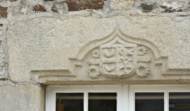 Au dessus de la porte principale : armes Grignart qui sont : de sable à la croix d´argent, cantonnée de 4 croissants de même. Supports : 2 lions. Sur le fronton dans l´axe de la porte : armes en alliance Grignard, autres armes disparues. Fenêtre du rez-de-chaussée à l´ouest : écu mi-parti, Grignard, de Cramoux (de gueules au cygne d´argent) et du Boisjean (d´azur à une croix ancrée d´argent). Sur cheminée, salle ouest du rez-de-chaussée : écu mi-parti, Grignard et de la Provosté (mariage en 1484 de Jean Grignard et de Guillemette de la Provosté). Armes Grignard avec écu en abîme de Cramoux sur pierre déposée avec date de 1605.