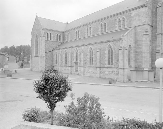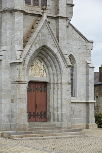 Contemporaine de l’église de Plougiel (1869-1873), dont il dessine les plans, la culture architecturale d’Alphonse Guépin demeure imprégnée par la grande époque du gothique : plan, élévation tripartite de la tour du clocher avec partie médiane percée d’une grande baie à trois lancettes, flèche polygonale cantonnée de lucarnes à pinacle. L’intérieur d’une grande simplicité et sobriété par l’absence de décor se rapproche de l’esthétique des églises gothiques bourguignonnes : ordonnancement à deux travées avec retombées des voûtes sur des demi-colonnes portées par des consoles.