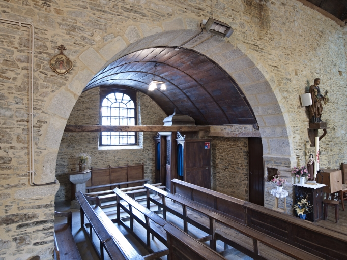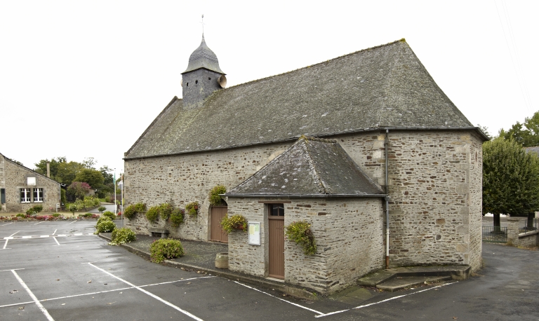 Selon la plupart des auteurs, l´ancien chef-lieu de la seigneurie des Champs-Géraux, siège d´une haute justice, se trouvait avant le 17e siècle à l´emplacement du bourg actuel. Ceci expliquerait que l´ancienne chapelle seigneuriale associée à un manoir aujourd´hui disparu ait été rebâtie en 1704 au même endroit pour Germain Nicollas, seigneur des Champs Géraux. En 1818, elle est agrandie d´une sacristie et d´une chapelle au nord, le couvrement de la nef est également refait, selon l´inscription : 'Pierre Adam Gilles Cuguen 1818'. L´église restaurée en 1955 est désormais érigée en église paroissiale. L'écu de la famille Nicollas, enterré durant la Révolution et retrouvé en 1937, est replacé au-dessus de la porte d'entrée en 1967. Parmi les oeuvres anciennes l´église conserve une Vierge à l´enfant d´une facture naïve pouvant remonter à la fin du 16e siècle. Près de la chapelle sont déposées trois socles de croix provenant de la commune, l´un d´entre eux présentent une inscription ' (...) NSPE de la VIGNE ' et des emblèmes professionnels : équerre et marteau de maçon.