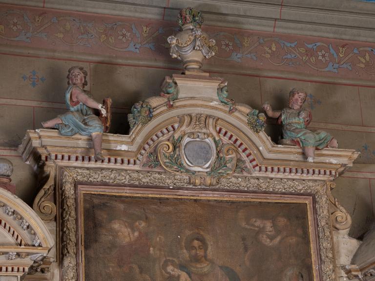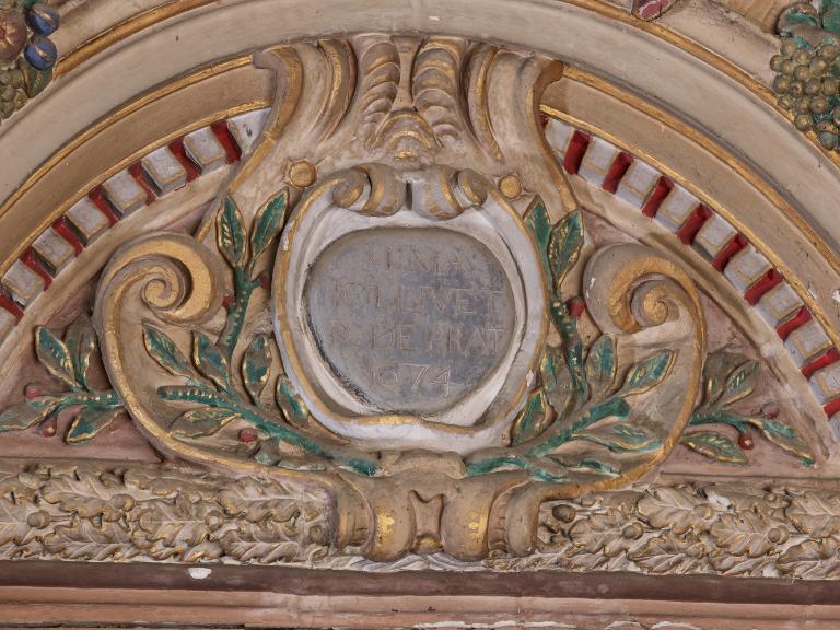 - retable baroque sud portant l'inscription et le millésime suivants : "M:MA: / IOLLIVET / R[Recteur] : DE PRAT / 1674" et des armoiries (non identifiées) ;