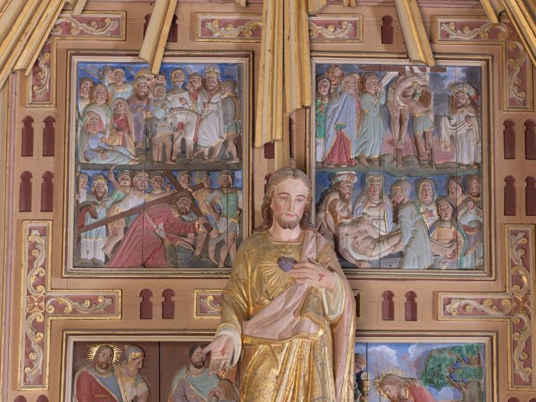 - maître-autel (autel principal) et retable de la Vierge (18e siècle) ;