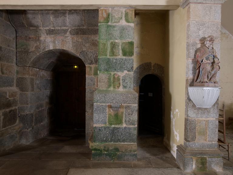 Des bas-cotés sont créés au sud en 1811 afin d'accueillir les fonts baptismaux : les murs sont également rehaussés à cette occasion. Des armoires sont visibles au sommet de l'aile sud.
