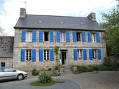 Logis et dépendances environnés de douves sur leurs côtés est, nord et ouest. Passerelle en bois sur piliers en maçonnerie permettant de traverser la douve au nord. Logis de plan allongé, à étage et élévation ordonnancée à cinq travées, construit en petits et moyens appareils de granite. Tour d'escalier rectangulaire en façade postérieure, avec pièce haute à son sommet. Appentis postérieur en rez-de-chaussée, de part et d'autre de la tour, à usage probable de cellier. Logis secondaire de type élémentaire édifié en alignement à l'est, peut-être destiné aux domestiques. Au nord, en bordure de la douve, alignement de dépendances construites en moellon.