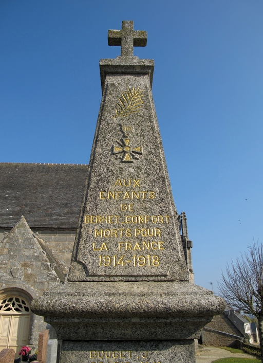 Ce monument aux morts a été réalisé au début des années 1920 en hommage aux morts de la Première Guerre mondiale originaires de la commune de Confort-Berhet. Une plaque a été apposée sur le monument après la Seconde Guerre mondiale.