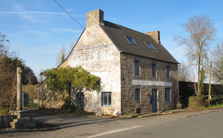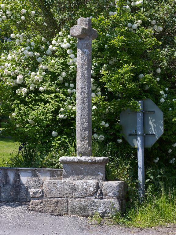 Croix taillée dans du granite. Elle est composée d'un soubassement maçonné, d'un socle à table moulurée, d'un fût hexagonal et d'une croix terminale ornée d'une croix du Sacré-Coeur (coeur surmonté d'une petite croix).