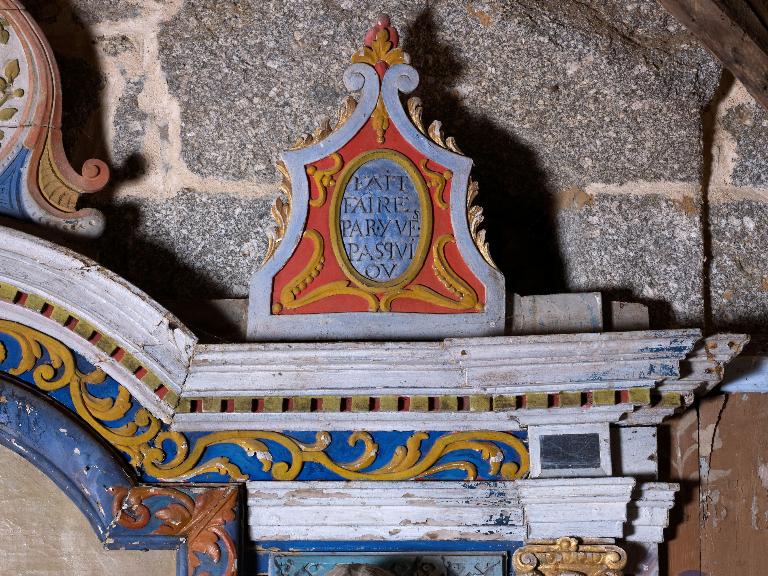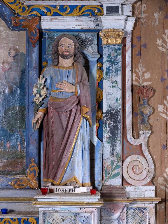 Son maître-autel est datable du 18e siècle ; il est flanqué au nord et au sud de deux retables. La chapelle comporte également une petite chaire à prêcher, plusieurs statues anciennes et trois tableaux dont un, réalisé par François Péron est daté de 1823.