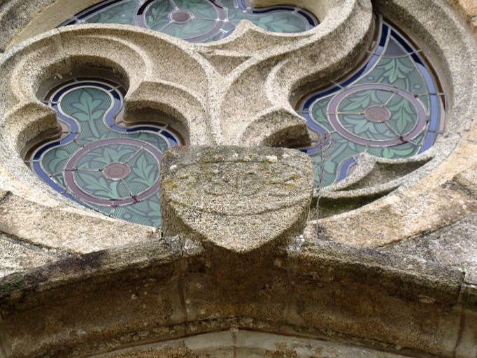 La maîtresse-vitre (fenêtre du chevet placée dans l'axe de l'église, unique ou plus importante que les autres) est datée du 3e quart 15e siècle (1467-1470) : elle a vraisemblablement été réalisée par les peintres verriers de Tréguier Oliver Le Coq et Jehan Le Lavenant comme à la chapelle Notre-Dame-de-la-Cour à Lantic (22) datée de 1463.