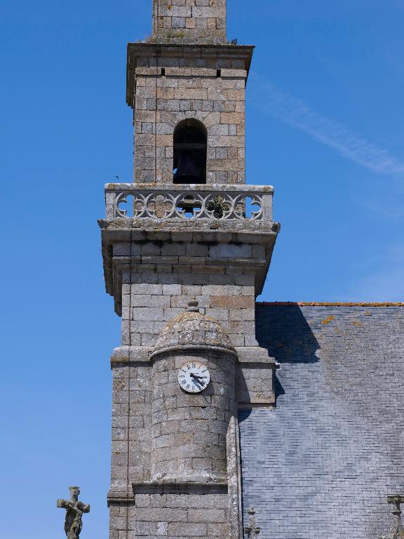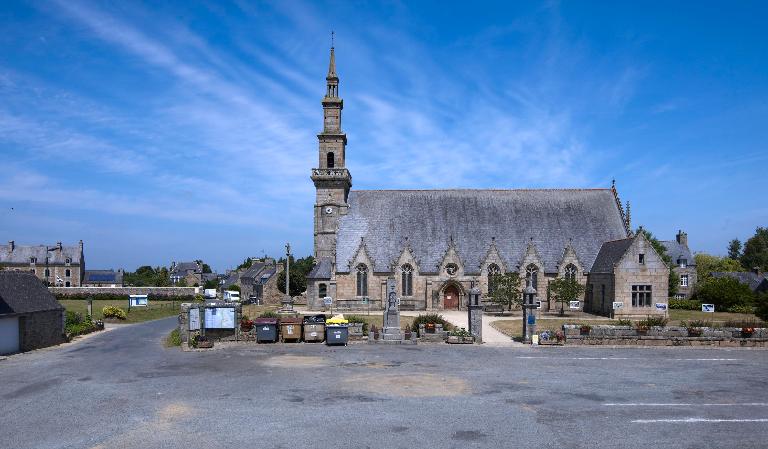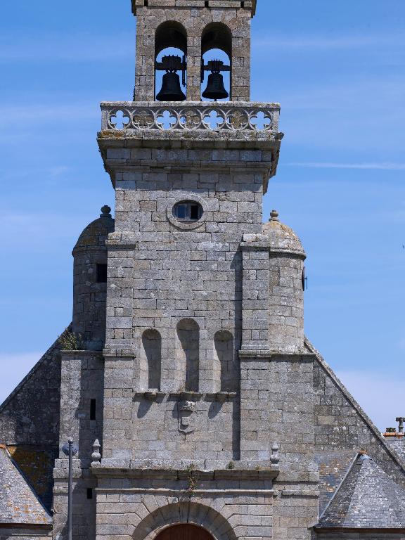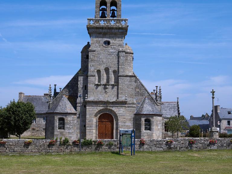 - reconstruction de la nef avec bas-côtés de sept travées et de la tour-clocher dans les années 1835-1837 sur des plans de l'architecte et entrepreneur lannionais Alain Lageat (projet approuvé le 25 juillet 1835). Des éléments anciens comme les portes nord et sud surmontées d'une archivolte (le remontage de la porte sud est datée 1835), des rampants ou crossettes sculptées sont remployés ;