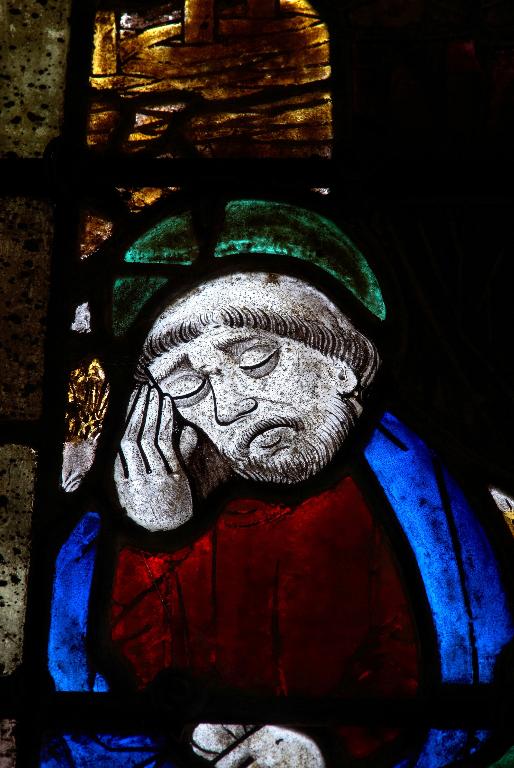 - chevet plat du 15e siècle de style gothique avec sa maîtresse-vitre datée 1460-1470 ;